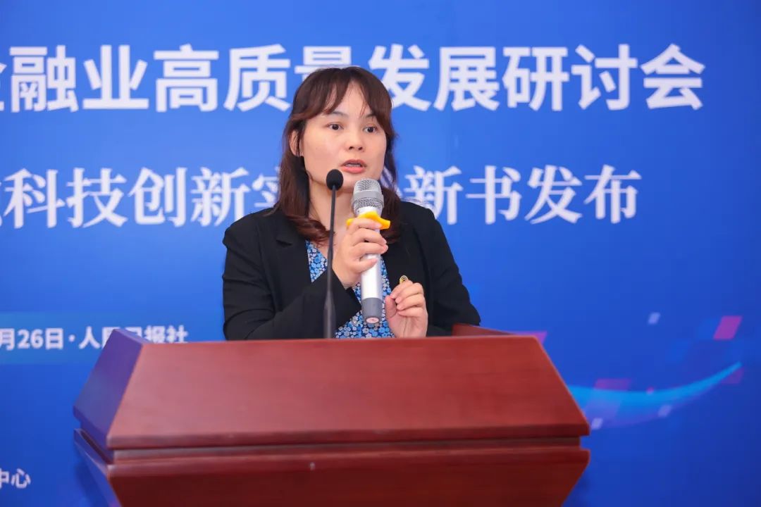 在学术支持代表单位发言环节,广州市数字金融协会秘书长江映霞对《数实融合:金融科技创新实践》一书和优秀案例表示肯定,并从广州市金融科技支持中小微企业数字化转型方面的“两条线”、广州市数字金融协会创新性地推进有关团体标准的制定、诚邀专家学者结合“数实融合”案例进行企业调研行等三方面进行分享。